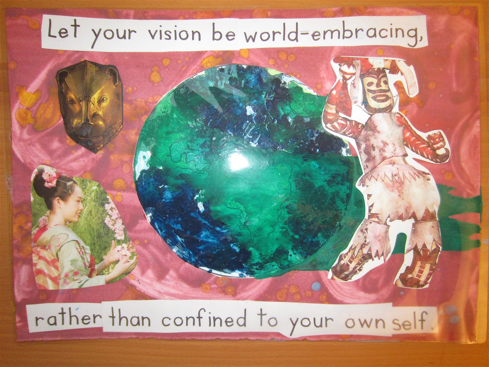 To give the children a sense of the vastness and diversity of the world beyond our daily lives, we watched parts of documentaries focusing on other cultures and global experiences. We watched some of an episode from the incredible "Human Planet" series and parts of the stunning documentary "Home", ( available in its entirety on Youtube). ("Home" can be a bit intense for some students this age, so it's good to explain the narration.)